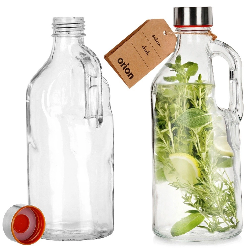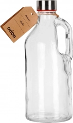 Diese Glasflasche mit Henkel ist die perfekte Wahl für Wasser, Säfte, Limonaden, Smoothies sowie hausgemachte Sirupe oder Liköre. Das transparente Glas ermöglicht die Kontrolle des Inhalts, das Metalldeckel mit Silikondichtung verhindert zuverlässig das Auslaufen und hält Getränke länger frisch. Dank des Henkels liegt die Flasche hervorragend in der Hand und lässt sich leicht ausgießen.