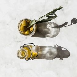 Das transparente Glas hebt Olivenöl mit Kräutern, Knoblauch oder Chili wunderschön hervor. Die Flasche eignet sich auch hervorragend für Essig und aromatisierte Aufgüsse.