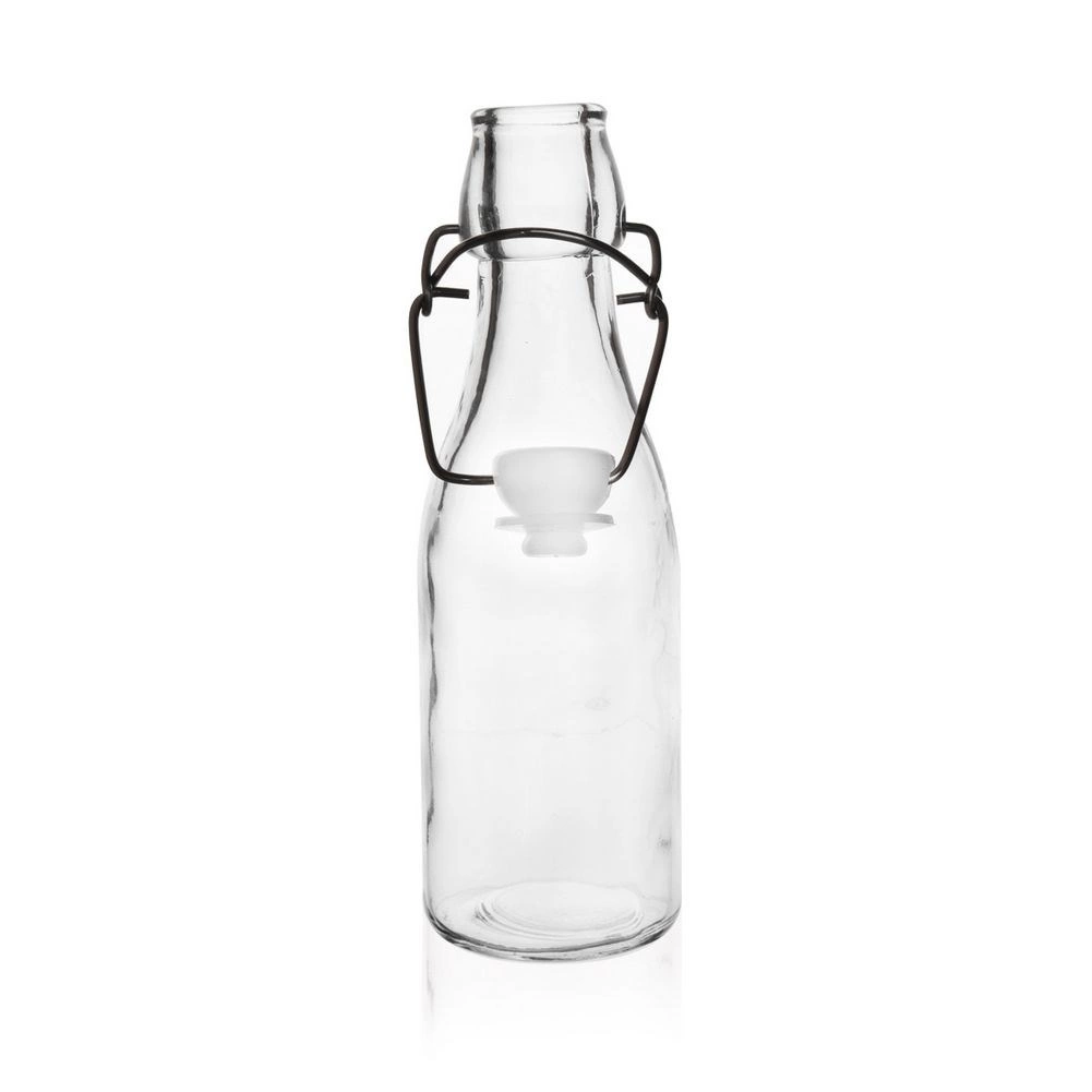 Praktische Glasflasche im Retro-Stil mit einem Fassungsvermögen von 290 ml, geeignet für Öle, Liköre und Sirupe. Dank des luftdichten Clipverschlusses mit Silikondichtung bewahrt sie den Inhalt sicher auf und hält die Frische. Das transparente Glas betont den Inhalt wunderschön und die Flasche ist sowohl zu Hause als auch in der Gastronomie ideal einsetzbar.