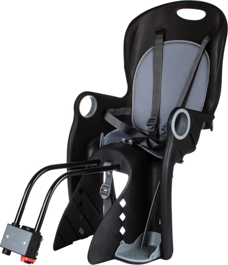 Dank des Schnellspann-Schnellverschlusses lässt sich der Sitz in Sekunden auf den Sattelstreben montieren oder abnehmen. Verstellbare Gurte und Fußstützen sorgen für die richtige Sitzposition des Kindes in verschiedenen Wachstumsphasen.