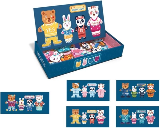 Dieses magnetische Set bringt spielerisches Ankleiden und Kombinieren von Outfits für eine niedliche Bärenfamilie. Dank stabiler magnetischer Teile gelingt das Wechseln der Kleidung mühelos und es lassen sich unendlich viele Kombinationen ausprobieren. Das Spiel fördert Kreativität, Hand-Auge-Koordination und logisches Denken.