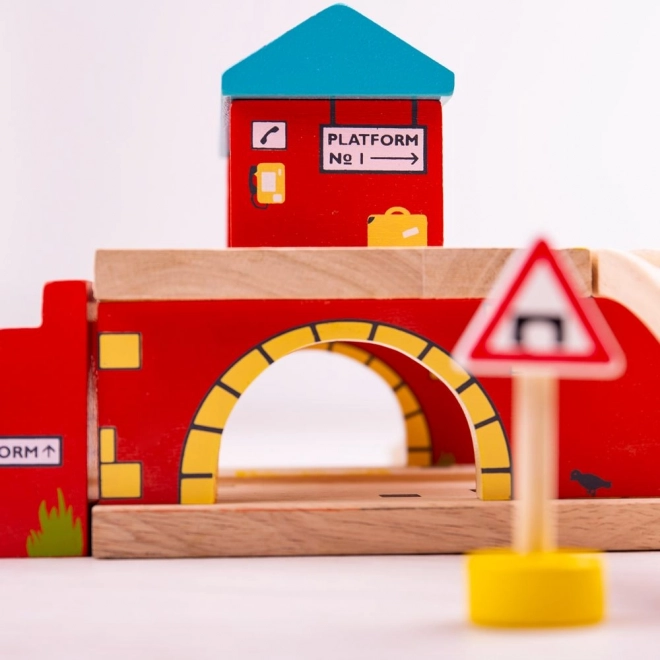 Der Bahnhof ist aus hochwertigem Holz gefertigt, das Stunden und Stunden des Spielens standhält.