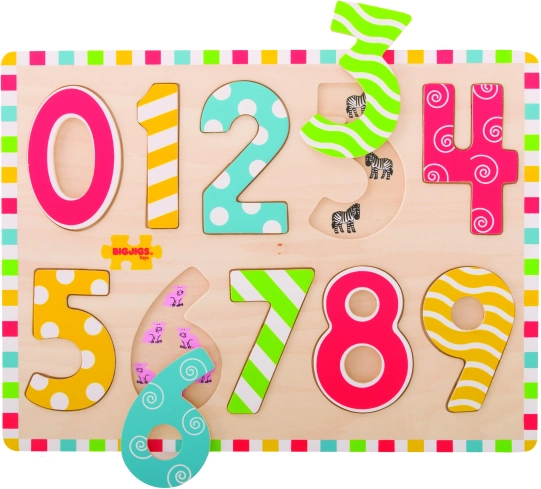 Das hölzerne Puzzle von Bigjigs Toys ist ein ideales Werkzeug für den Unterricht im Zählen. Es hilft, Fähigkeiten von Kindern zu entwickeln, verbessert die Koordination und sorgt dank fröhlicher Bilder für Konzentration.