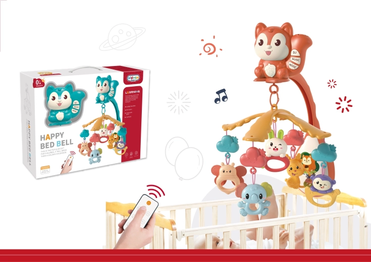 Das Bett-Mobile mit dem niedlichen Eichhörnchen verbindet visuelle Stimulation mit wohltuender Beruhigung. Dank des Projektors werden sanfte Lichtmuster projiziert, die Entspannung und Schlaf fördern. Fünf hängende Anhänger (Rasseln/Beißringe) bieten verschiedene Texturen und Geräusche zur Förderung der Feinmotorik und der Sinneswahrnehmung.