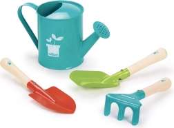 Das vollständige Gartenset von Vilac für kleine Gärtner umfasst Schaufel, Rechen, Spaten und Gießkanne. Dieses Set ist ideal zur Förderung von Kindern in den Bereichen Natur und Motorik.