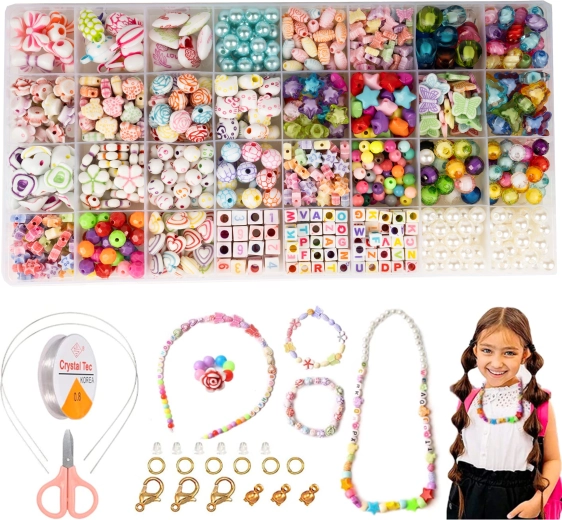 Entdecken Sie Spaß und kreative Entwicklung mit diesem Schmuckbastel-Set. Enthält 32 Arten farbiger Perlen und eine transparente Angelschnur für einfaches Auffädeln. Ideal für Kinder ab 6 Jahren, fördert Feinmotorik, Fantasie und Kreativität.