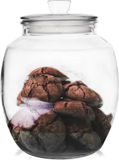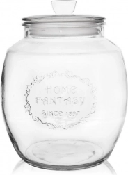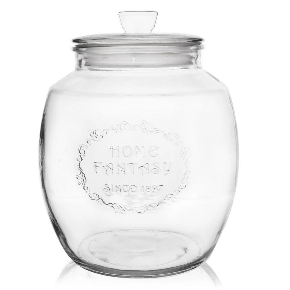 Praktische Glasdose mit einem Volumen von 2,2 l und dicht schließendem Deckel – ideal zur Aufbewahrung trockener Lebensmittel wie Kekse, Pasta, Kaffee oder Kräuter. Das transparente, dickwandige Glas ermöglicht eine schnelle Inhaltskontrolle, die luftdichten Silikondichtungen bewahren Frische und Aroma länger. Das elegante Relief „HOME FANTASY“ verleiht der Küche Stil.
