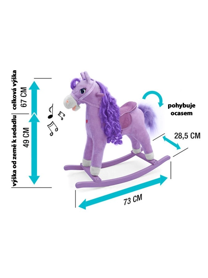 Dank der Möglichkeit, das Schaukelgestell zu demontieren, erhalten Sie zwei Spielzeuge in einem – ein Schaukelpferd und eine separate Plüschfigur. Die Verpackung in einer Box eignet sich auch als schönes Geschenk. Batterien sind nicht enthalten, sodass Sie eine hochwertige Stromquelle nach Ihren Vorlieben wählen können.