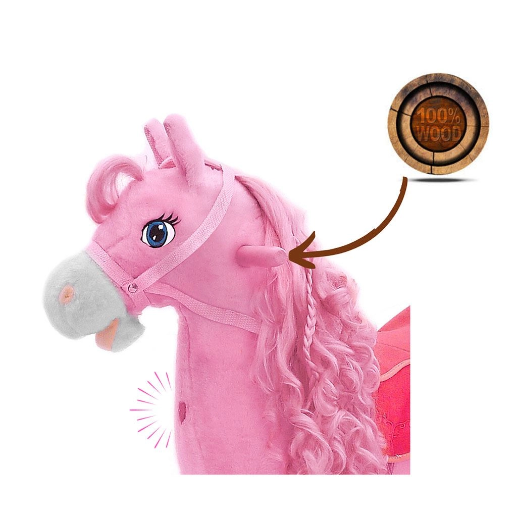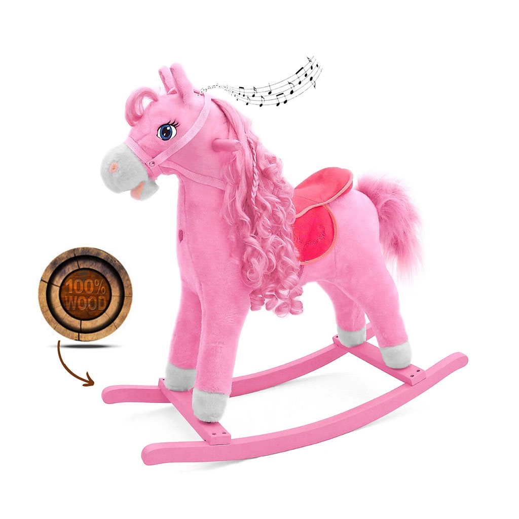 Das Schaukelpferd Milly Mally Princess ist die ideale Wahl für Kinder ab 18 Monaten, die Bewegung und Soundeffekte lieben. Hochwertiger weicher Plüsch, eine stabile Konstruktion und Holzelemente sorgen für komfortalen und sicheren Spielspaß. Beim Drücken der Ohren erwacht das Pferd zum Leben – es wedelt mit dem Schweif, bewegt das Maul und gibt fröhliches Wiehern von sich, was die Fantasie und Motorik des Kindes fördert.