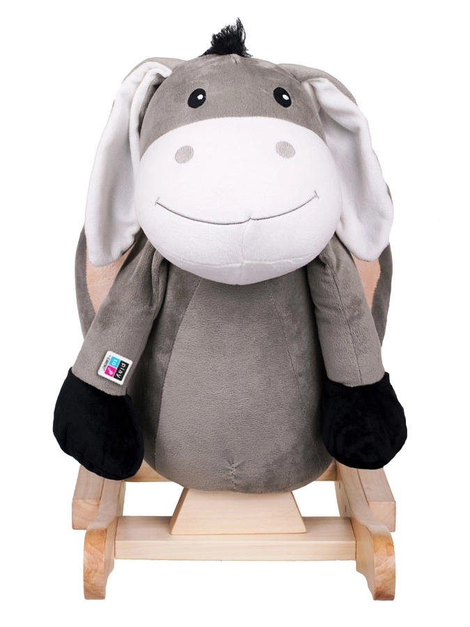 Beim Drücken der Pfote spielt der Esel eine fröhliche Melodie, die die Sinne anregt und das Schaukeln noch unterhaltsamer macht. Das Spielzeug hilft, Gleichgewicht, Koordination und Grobmotorik zu entwickeln und ist zugleich eine schöne Ergänzung fürs Kinderzimmer.