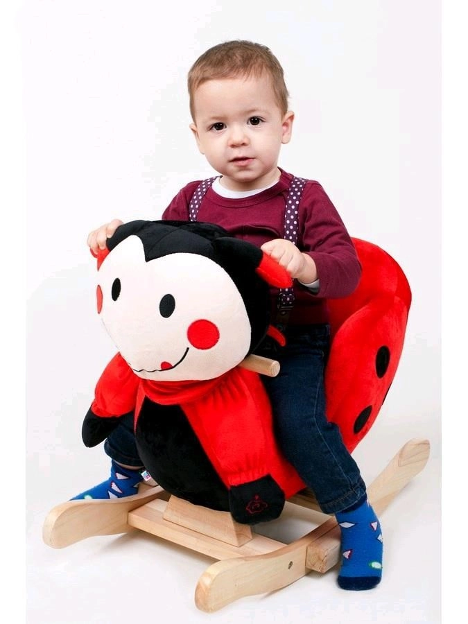 Das Schaukelspielzeug PlayTo in Marienkäferform verbindet eine sichere Konstruktion mit kuschelweichem Plüsch und unterhaltsamen Funktionen. Dank des bequemen Sitzes mit Rückenlehne und der stabilen Holzbasis genießen Kinder komfortables und gleichmäßiges Schaukeln. Durch Drücken der Pfote startet eine Melodie, die Neugier und Spielfreude zusätzlich anregt.