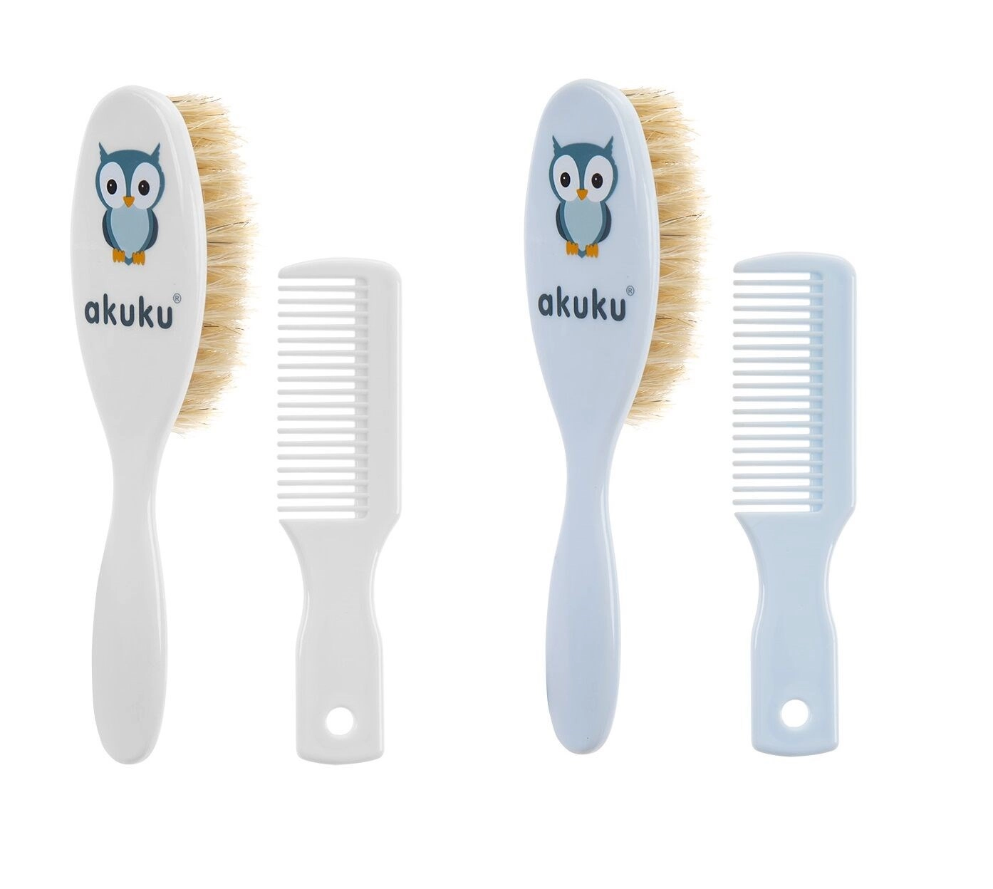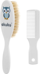 Bürste und Kamm mit Naturborsten AUKUKU Eule – weiß