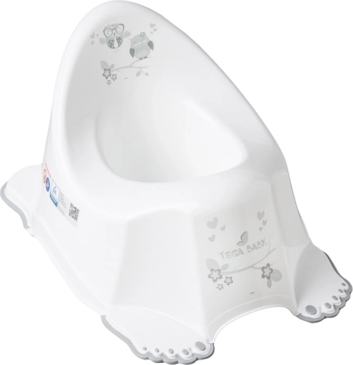 Bringen Sie Ihrem Kind spielerisch hygienische Gewohnheiten bei. Das spielende Kinder-Töpfchen im weißen Design mit einer niedlichen Eule spielt nach dem Wasserlassen eine Melodie ab, die das Kind positiv motiviert. Die rutschfeste Unterseite sorgt für Stabilität und Sicherheit auf glatten Böden.