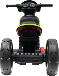 Das stylische elektrische Kinder-Motorrad Baby Mix Police in Grün bietet Kindern von 3 bis 7 Jahren eine sichere Fahrt mit 2–4 km/h, einen bequemen breiten Sitz und stabile große Räder. Zwei 6V/24W-Motoren mit Hinterradantrieb und ein 6V/7Ah-Akku sorgen für bis zu 1–2 Stunden Fahrspaß. Mit dabei sind LED-Lichter, Soundeffekte und die Möglichkeit, Musik über USB/MP3 abzuspielen.