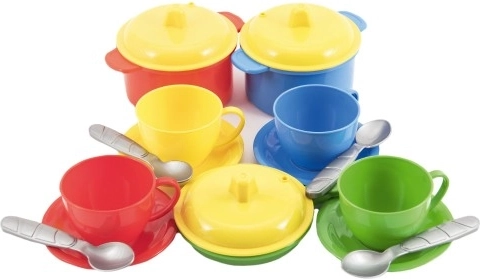 Mit diesem farbenfrohen Kinder-Geschirrset können Kinder überall imaginäre Delikatessen zubereiten. Es eignet sich hervorragend für den Sand, den Garten oder den Strand und fördert Kreativität und interaktives Spiel. Das Geschirr ist aus robustem Kunststoff gefertigt, der für kleine Hände entwickelt wurde.