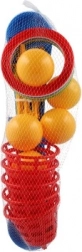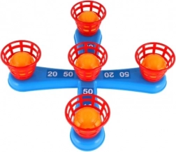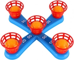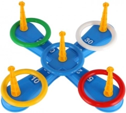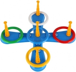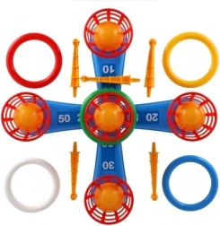 Dieses unterhaltsame Spiel ist ideal für die kleinsten Kinder. Es enthält ein Kreuz mit fünf Spitzen, auf die Kinder bunte Plastikringe werfen, um Punkte zu sammeln. Jeder erfolgreiche Wurf, bei dem der Ring auf einer Spitze platziert wird, bringt Punkte und fördert den Wettbewerb und die Präzision. Die zweite Spielvariante funktioniert nach demselben Prinzip, allerdings wurden die Spitzen durch Körbchen für Bälle ersetzt, was eine neue Herausforderung bietet.