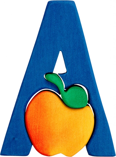 Das hölzerne Einlegepuzzle mit dem Buchstaben A und Apfelmotiv ist ein ideales Hilfsmittel für die erste Begegnung mit Buchstaben. Die Teile passen exakt ineinander, was Konzentration und Geduld unterstützt. Die Oberfläche ist mit kindersicheren Farben behandelt und das Produkt erfüllt die EU-Sicherheitsnormen.