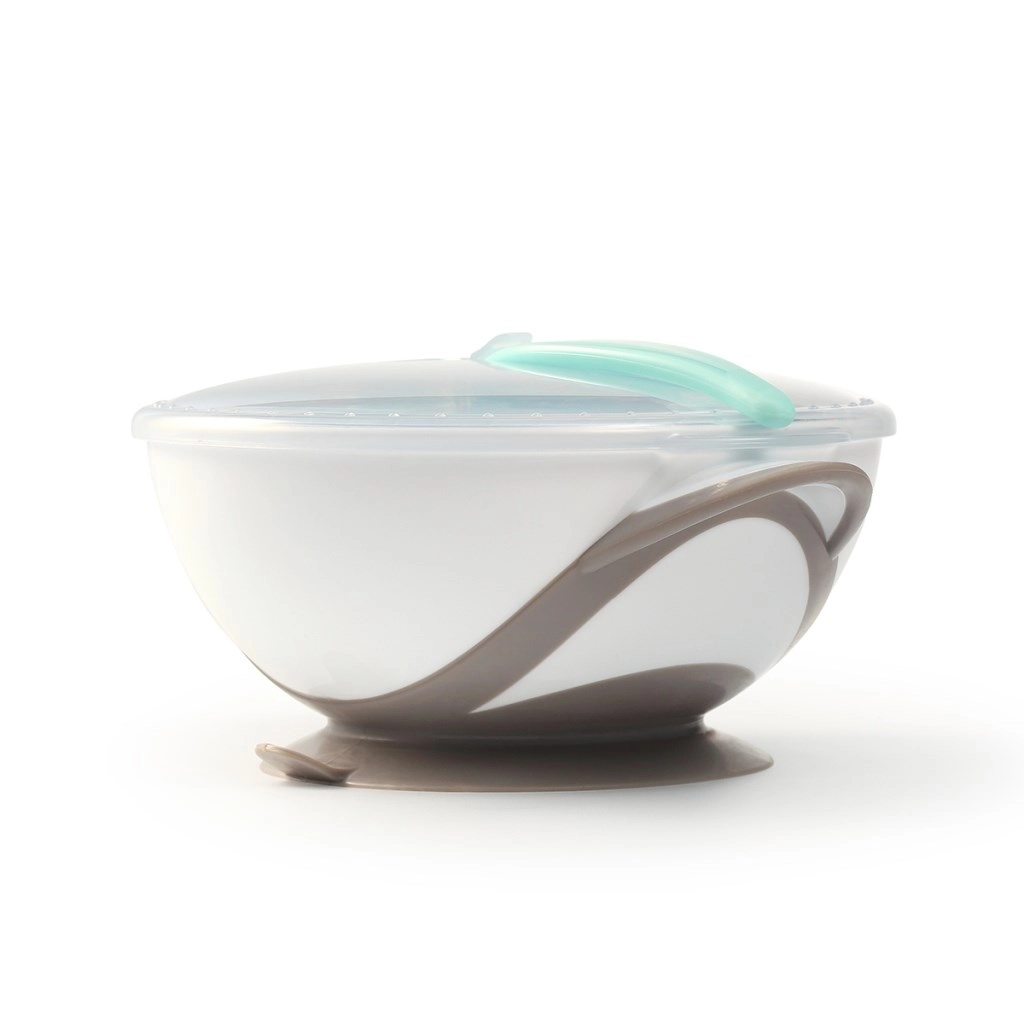 Der starke Saugnapf am Schüsselboden hält das Gefäß sicher auf dem Tisch und reduziert das Risiko des Umkippens und Kleckerns beim Essen.
