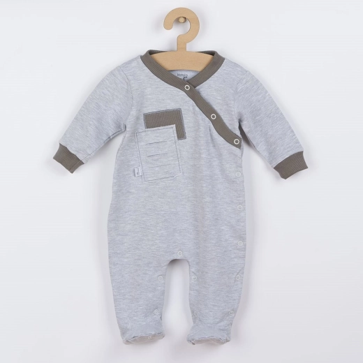 Dieser graue Overall für Babys verbindet modernes, originelles Design mit maximalem Komfort. Dank des Elastan-Anteils passt er sich dem Körper hervorragend an, während der hohe Baumwollanteil Sanftheit und Atmungsaktivkeit für empfindliche Babyhaut garantiert.