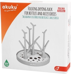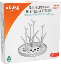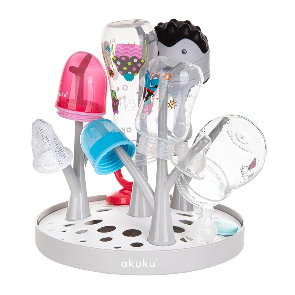 Das AKUKU Abtropfgestell für Flaschen und Zubehör ist die ideale Wahl für Eltern, die Babyutensilien stets trocken und einsatzbereit haben möchten. Das baumartige System aus Stiften hält Flaschen, Sauger und Deckel aufrecht, damit Wasser schnell abläuft und Luft frei zirkulieren kann. Dank der kompakten Maße und der faltbaren Konstruktion lässt sich das Gestell leicht transportieren und verstauen – perfekt für die Küche und die Reisetasche.