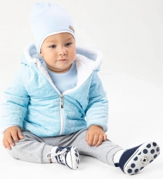 Die praktische Kapuze und die umschlagbaren Ärmel schützen vor Kälte, während das verlängerte Rückenteil den Rücken warm hält. Der Reißverschluss über die gesamte Länge erleichtert das An- und Ausziehen. Im Set enthalten ist eine weiche Baumwollmütze, die das Outfit ergänzt und die empfindliche Haut schützt.