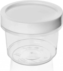 Zuverlässiger und vielseitiger runder Behälter mit 300 ml Fassungsvermögen, weißem Deckel und transparentem Körper, der eine einfache Sichtkontrolle ohne Öffnen ermöglicht. Dank der hochwertigen Dichtung ist die Box außergewöhnlich auslaufsicher und hält Ihr Essen länger frisch – ohne Auslaufgefahr beim Transport.