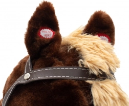 Kuschelig weiche Oberfläche, Sattel mit stilvoller Einfassung und praktische Steigbügel für einen sicheren Sitz der kleinen Reiter.