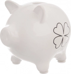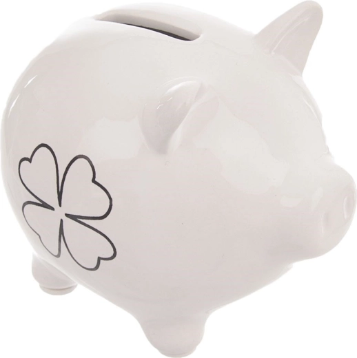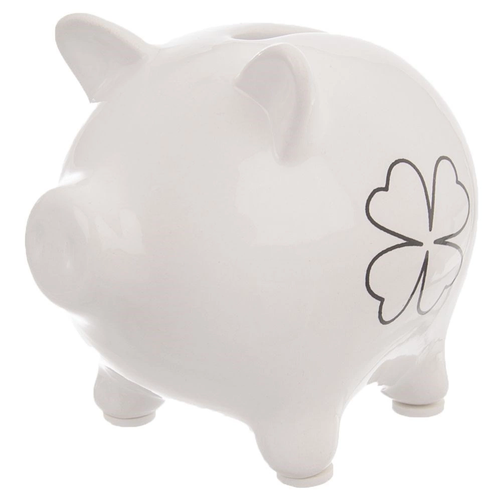 Die minimalistische weiße Sparschwein-Spardose mit einer dezenten Kleeblattkontur ist ideal für das tägliche Aufbewahren von Münzen und Geldscheinen. Dank der stabilen Keramik und der glatten Glasur wirkt sie elegant und fügt sich perfekt in Kinderzimmer, Büro oder Wohnzimmer ein.