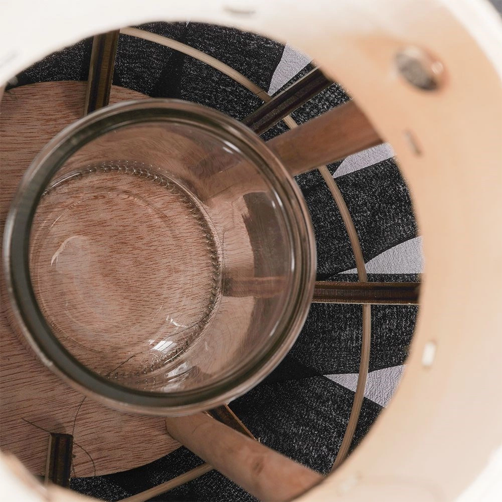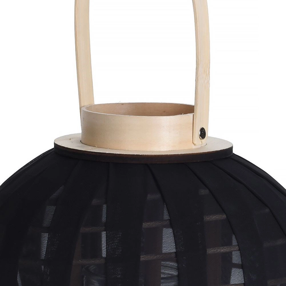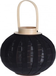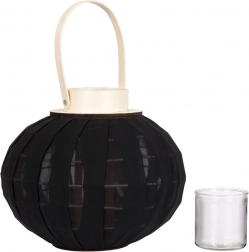 Stilvoller Lampion aus Holz und schwarzem Stoff für gemütliches Licht zu Hause und auf der Terrasse. Enthält einen Glaseinsatz für die sichere Nutzung von Kerzen, hat einen praktischen Griff und passt in moderne sowie Loft-Interieurs.
