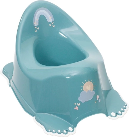 Der spielende Kindertopf Meteo in Türkis ist ein hervorragender Helfer beim Erlernen hygienischer Gewohnheiten. Dank der hohen Rückenlehne und der breiten Sitzfläche bietet er Kindern ein bequemes und stabiles Sitzen. Die rutschfeste Ausführung an der Unterseite hilft, ein Verrutschen zu verhindern und erhöht die Sicherheit bei der Benutzung.
