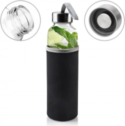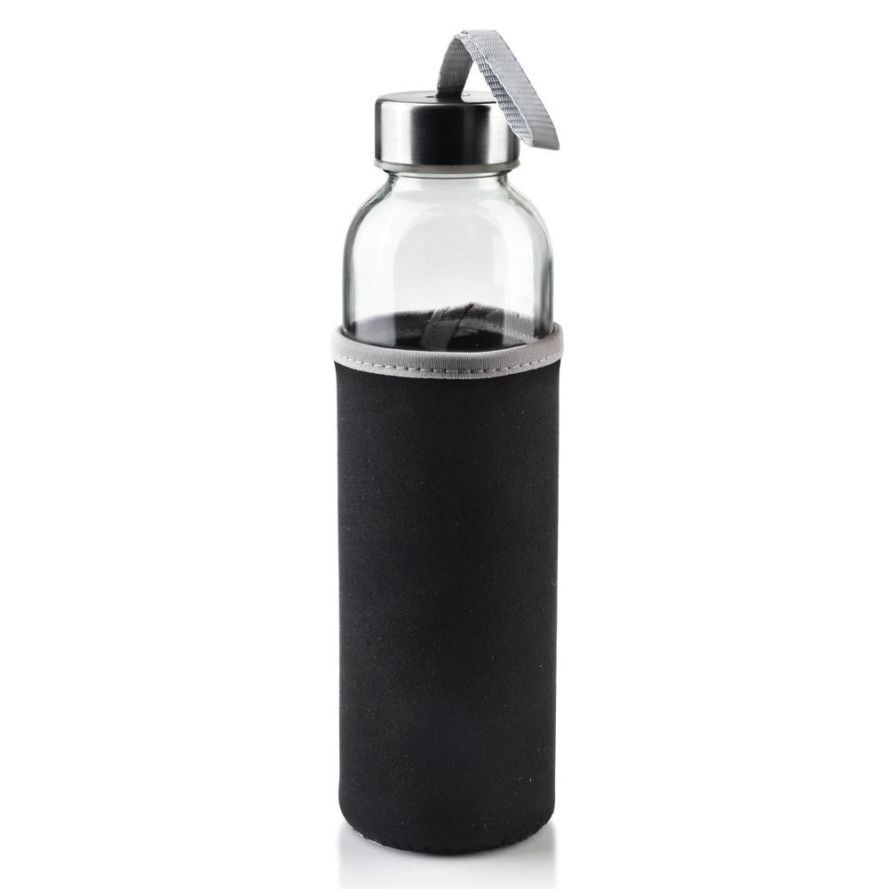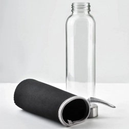 Die stilvolle und robuste Glasflasche mit 490 ml Fassungsvermögen verbindet klares Design, sichere Materialien und praktische Details für den bequemen Alltagsgebrauch. Der verschraubte Edelstahldeckel mit Silikondichtung verhindert Auslaufen, während die abnehmbare Neoprenhülle den Griff verbessert, isoliert und die Flasche vor Stößen schützt.