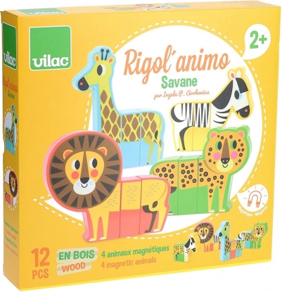 Das Holzpuzzle Fröhliche Safari bietet Kindern ab 2 Jahren Spielspaß mal anders: Jedes Tier besteht aus massiven Teilen mit versteckten Magneten, die sanft aneinander haften. Die Teile können zwischen den einzelnen Tieren ausgetauscht werden, um lustige „Hybride“ zu erschaffen, die Fantasie und Neugier anregen.