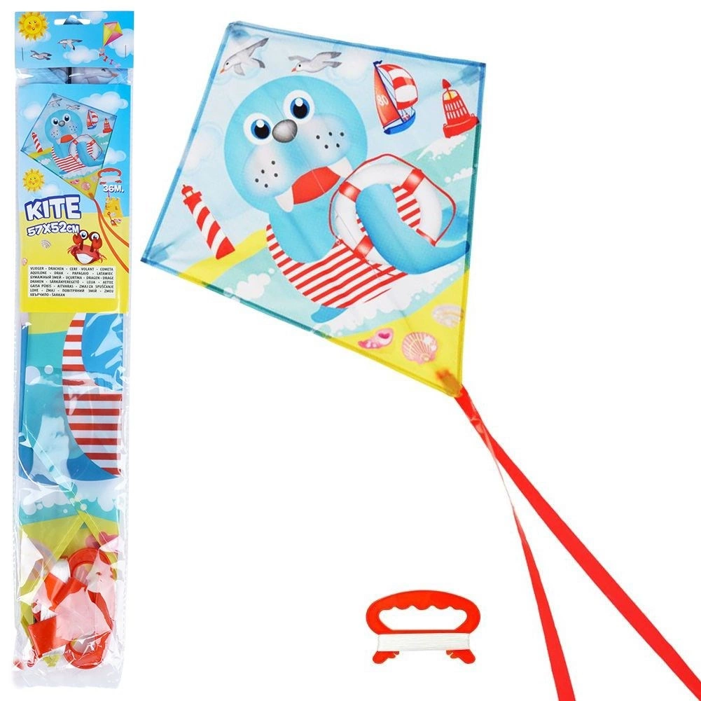 Leichter und strapazierfähiger Kinder-Drachen mit Seehund-Motiv für stundenlangen Spaß an der frischen Luft. Dank der Maße 57 × 52 cm, dem langen Schweif und dem stabilen Flug macht er am Himmel eine hervorragende Figur. Hergestellt aus hochwertigem Polyester mit lebendigen Farben, mit komfortablem Griff und 36 m Schnur für einfache Handhabung, auch für Anfänger.