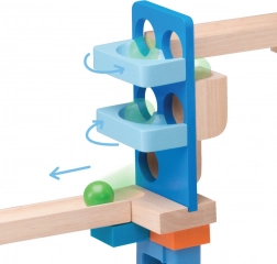 Entdecken Sie den Zauber der Kugelbahn TRIX Magische Brücke, die Teil der TRIX®-Serie von Wonderworld ist. Dank des ausgeklügelten Konzepts und des variablen Designs können Sie unendlich viele Teile kombinieren und einzigartige Strecken erstellen. Die Bahn ist dank des durchdachten Verbindungssystems der Teile stabil.