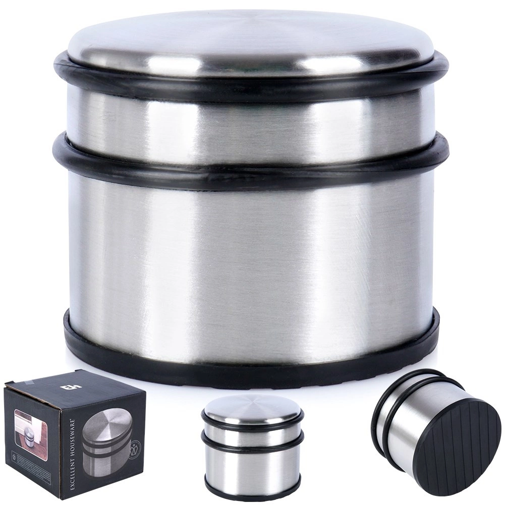 Der robuste Türstopper mit modernem Edelstahl-Look verhindert, dass Türen ungewollt zufallen oder gegen Wände und Möbel schlagen. Die massive Konstruktion und die rutschfeste Gummibasis sorgen für Stabilität auf den meisten Bodenarten.