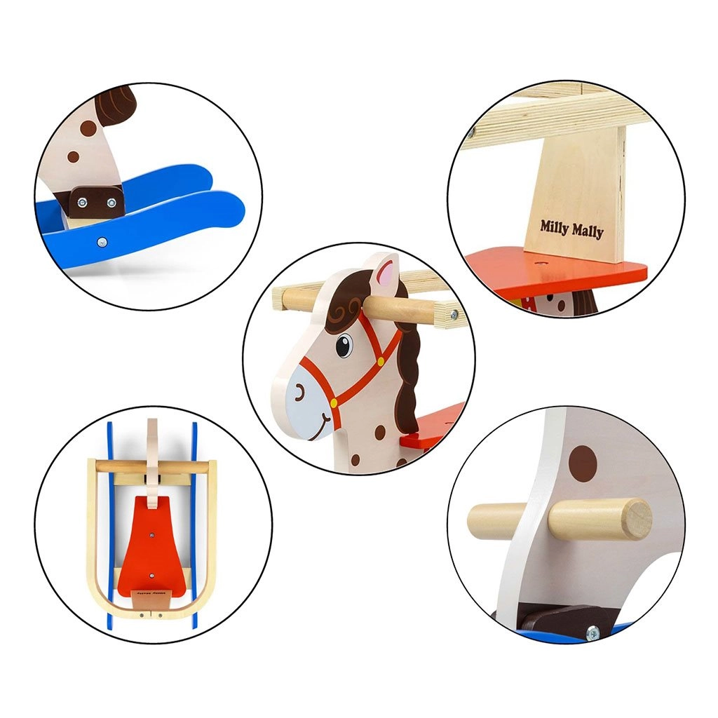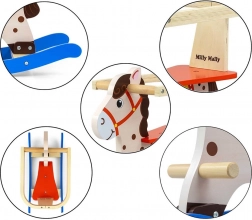 Das Holz-Schaukelpferd Lucky erfreut jedes Kind mit einer sanften Bewegung, die an das Wiegen im Arm erinnert. Es besteht aus strapazierfähigem MDF und Sperrholz und ist mit ungiftigen, umweltfreundlichen Farben in angenehmen Pastelltönen lackiert. Profilierte Kufen sorgen für eine gleichmäßige und sichere Bewegung ohne Kippgefahr.
