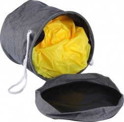 Machen Sie Aufräumen zum Spiel. Dieser Korb mit befestigter Spielmatte verwandelt verstreute Bausteine, Autos oder Figuren in einem Schritt in ordentlich verstautes Spielzeug. Einfach an der Kordel ziehen und alles ist im Handumdrehen verstaut. Dank des wasserabweisenden Materials in Grau und der gelben Matte mit schwarzer Umrandung ist der Korb ideal fürs Kinderzimmer und für Reisen.