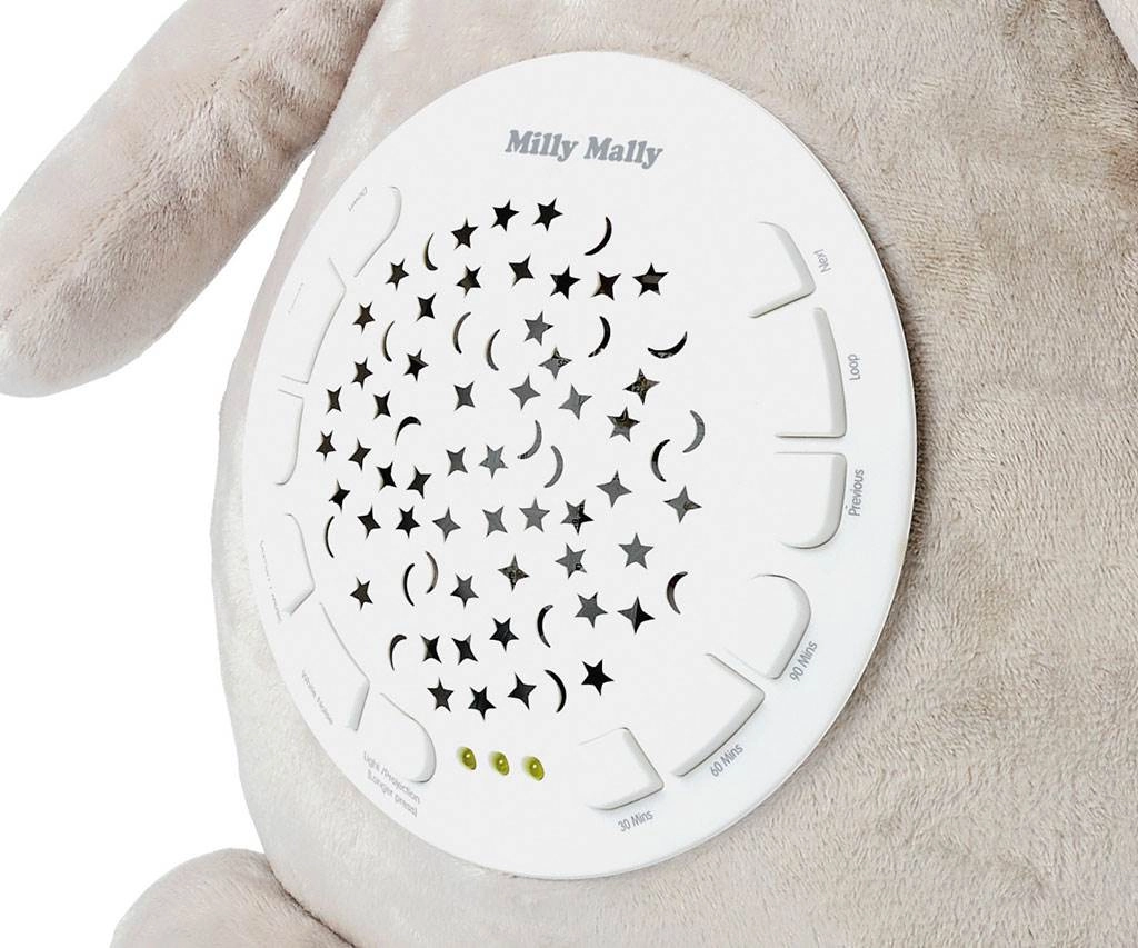 Der Plüsch-Koala MILLY MALLY ist der ideale Begleiter für abendliche Beruhigung und zum Einschlafen. Der Projektor zaubert einen sanften Nachthimmel und wird von beruhigenden Melodien sowie Naturgeräuschen begleitet. Dank einstellbarem Timer und Lautstärkeregelung passen Sie die Umgebung leicht an die Bedürfnisse Ihres Babys an.