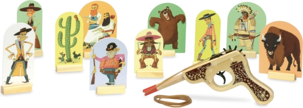 Stellen Sie die Zielscheiben auf, spannen Sie das Gummiband und fordern Sie Familie oder Freunde zu einem Schussduell im Wohnzimmer heraus. Die hochwertige Ausführung aus Holz sorgt für Widerstandsfähigkeit und lange Lebensdauer, während das attraktive Western-Design kleine Revolverhelden begeistert.