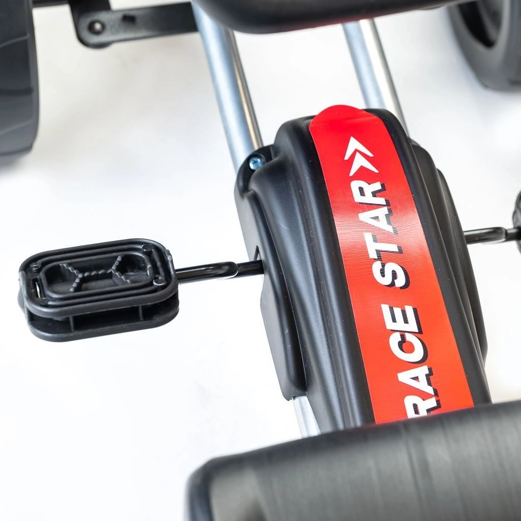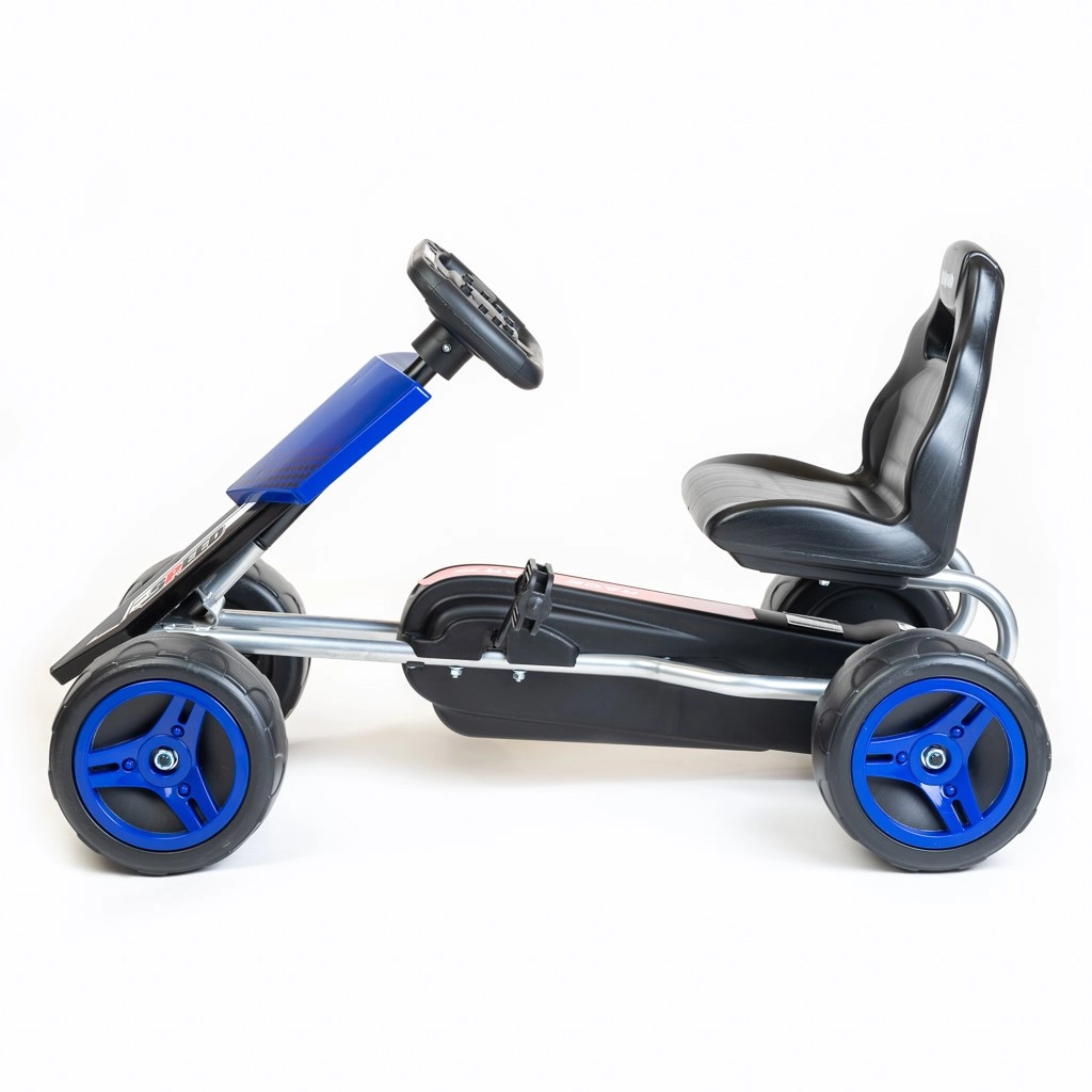 Der praktische Kettenantrieb mit Vorwärts-/Rückwärtsfunktion ermöglicht eine einfache Bedienung, während der verstellbare Sitz (2 Positionen) mit dem Kind mitwächst. Das Fahrzeug erfüllt die europäischen Sicherheitsnormen, verfügt über ein Sportlenkrad, Kunststoffabdeckungen und Schutzteile für erhöhte Sicherheit und Langlebigkeit.