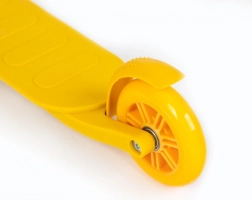 Die hintere Schutzblechbremse ermöglicht dem Kind ein intuitives und sanftes Anhalten. Das strukturierte Trittbrett mit Antirutsch-Oberfläche erhöht die Sicherheit beim Abstoßen und Fahren.