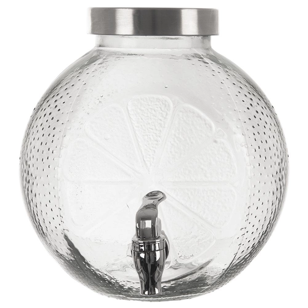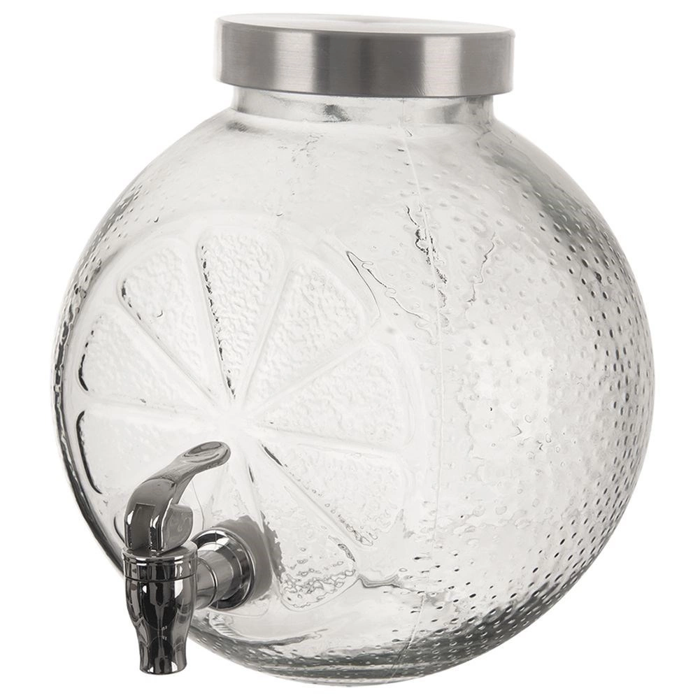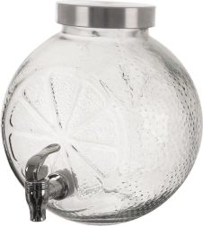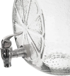 Der großvolumige Getränkespender aus Glas mit Zapfhahn serviert elegant Wasser mit Früchten, Limonade oder erfrischenden Punsch. Dickes, hochwertiges Glas mit Relief von Zitrusscheiben ist lebensmittelecht und sorgt für eine attraktive Optik und Stabilität. Der Schraubdeckel aus Metall schützt den Inhalt vor Schmutz und Insekten, während der Metallzapfhahn ein komfortables Zapfen ohne Verschütten ermöglicht.