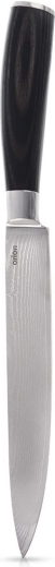 Entdecken Sie präzise Verarbeitung und zuverlässige Leistung. Die Damastklinge mit 67 Lagen bietet hervorragende Schärfe, Härte und Langlebigkeit und besticht zugleich durch das charakteristische Damastmuster. Der ergonomische Griff aus Pakka-Holz widersteht Feuchtigkeit, Hitze und Chemikalien und liegt sicher in der Hand.