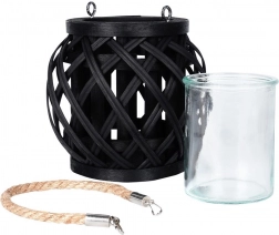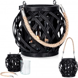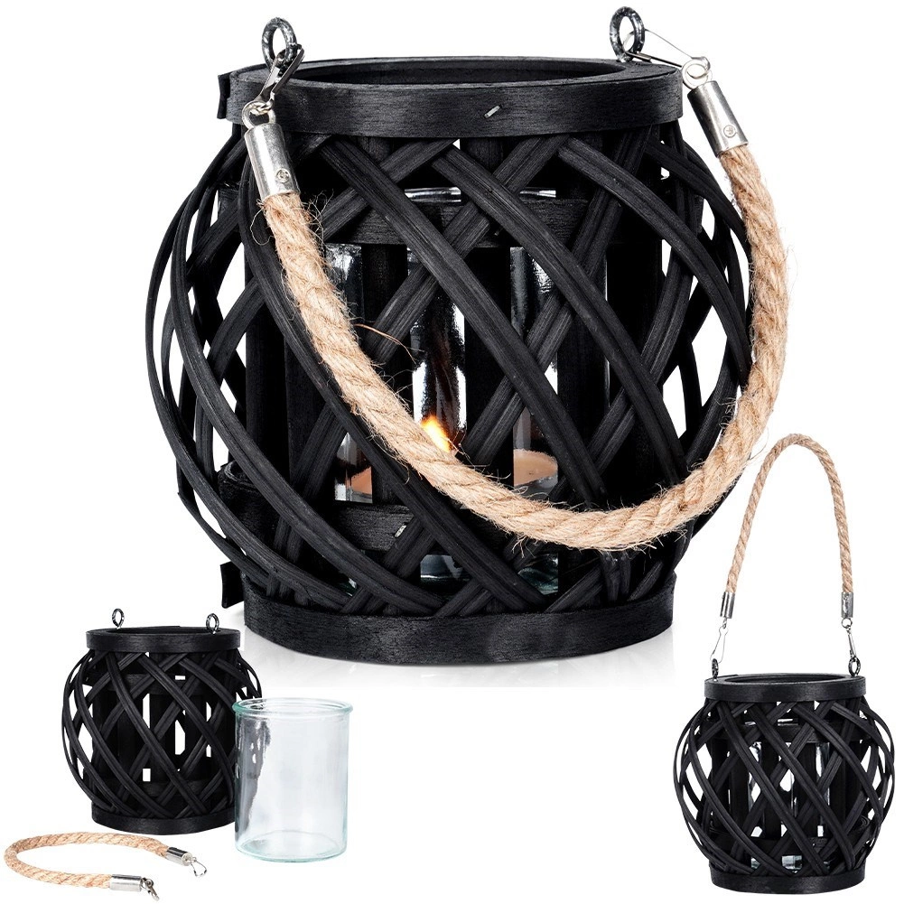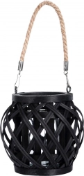 Dieser dekorative Lampion aus natürlichem, schwarz lackiertem Bambusholz eignet sich ideal für gemütliche Abende auf dem Balkon, der Terrasse oder im Wohnzimmer. Die offene Flechtkonstruktion schafft effektvolle Lichtreflexe und verleiht dem Raum eine angenehme, beruhigende Atmosphäre.