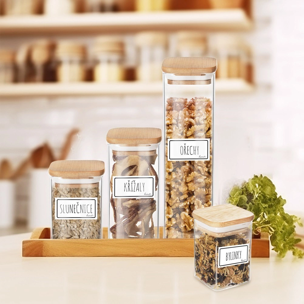 Die Dose hat ein Fassungsvermögen von 600 ml und Maße von 6 × 6 × 21 cm, wodurch sie perfekt in Regale und Organizer passt. Geeignet für trockene Lebensmittel wie Kaffee, Zucker, Tee, Reis, Nudeln, Nüsse, Trockenobst oder Süßigkeiten. Der Glaskörper ist spülmaschinengeeignet (den Deckel empfehlen wir per Hand zu reinigen).