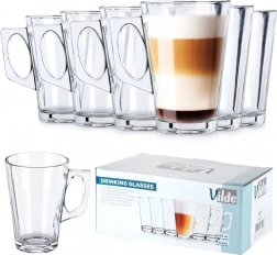 Das Set aus 6 Henkeltassen mit 255 ml vereint zeitloses Design und Alltagstauglichkeit. Das transparente Glas betont geschichtete Latte, Tee und hausgemachte Limonaden, während der robuste Henkel einen sicheren und komfortablen Griff gewährleistet. Dank der dickeren Wände sind die Gläser stabil und widerstandsfähig.