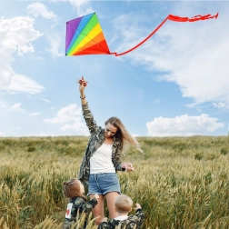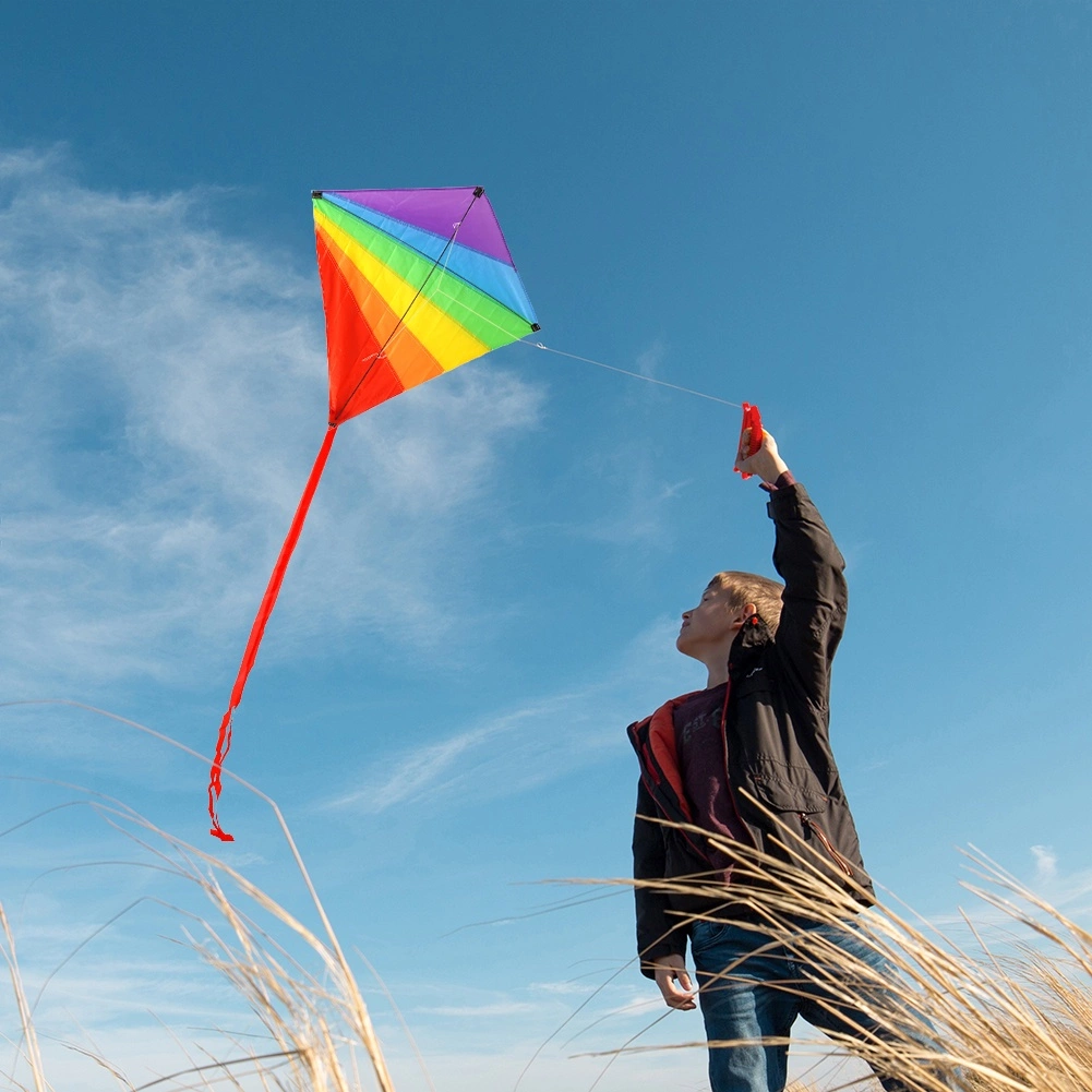 Dieser Regenbogendrachen aus hochwertigem Polyester begeistert Kinder und Erwachsene. Dank der leichten Ausführung steigt er mühelos auf, und der lange Schwanz verleiht ihm hervorragende Stabilität im Wind. Geeignet für Strand, Garten und weite Wiesen.