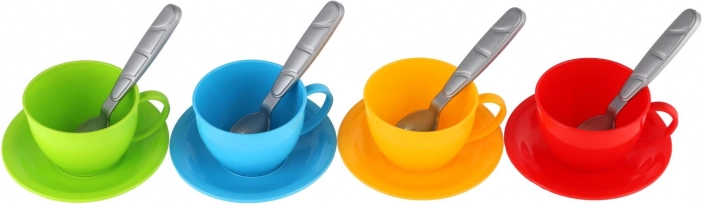 - Teekanne, 4 Tassen, 4 Untertassen, 4 Löffel (Farbkombination)