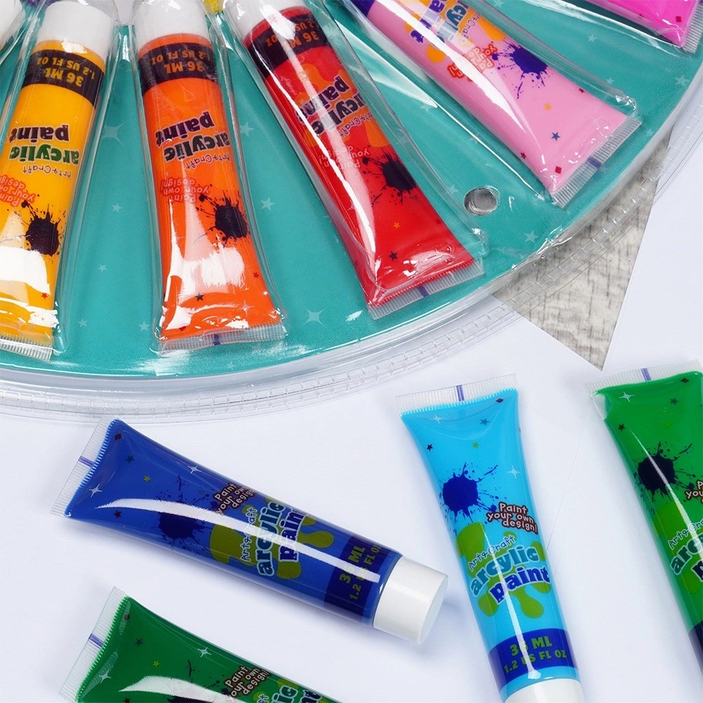 Entdecken Sie ein vielseitiges Acrylfarbenset für kreative Projekte: 18 Farben in praktischen 36-ml-Tuben und eine Kunststoffpalette zum Mischen von Farbtönen. Die Farben bieten intensive, langlebige Pigmente, hervorragende Deckkraft und eignen sich für Papier, Leinwand, Holz und Textilien. Enthalten sind auch metallic-, perlmutt-, neon- und glitzernde Varianten für effektvolle Ergebnisse.