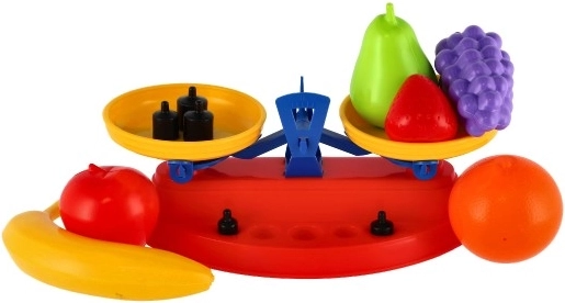 Das Set enthält 7 realistisch geformte Obststücke aus leichtem, robustem Kunststoff und eine praktische Waage mit zwei Schalen. Ideal für Vorschulkinder ab 3 Jahren – sichere Materialien, kräftige Farben und einfache Handhabung motivieren zum wiederholten Spielen.